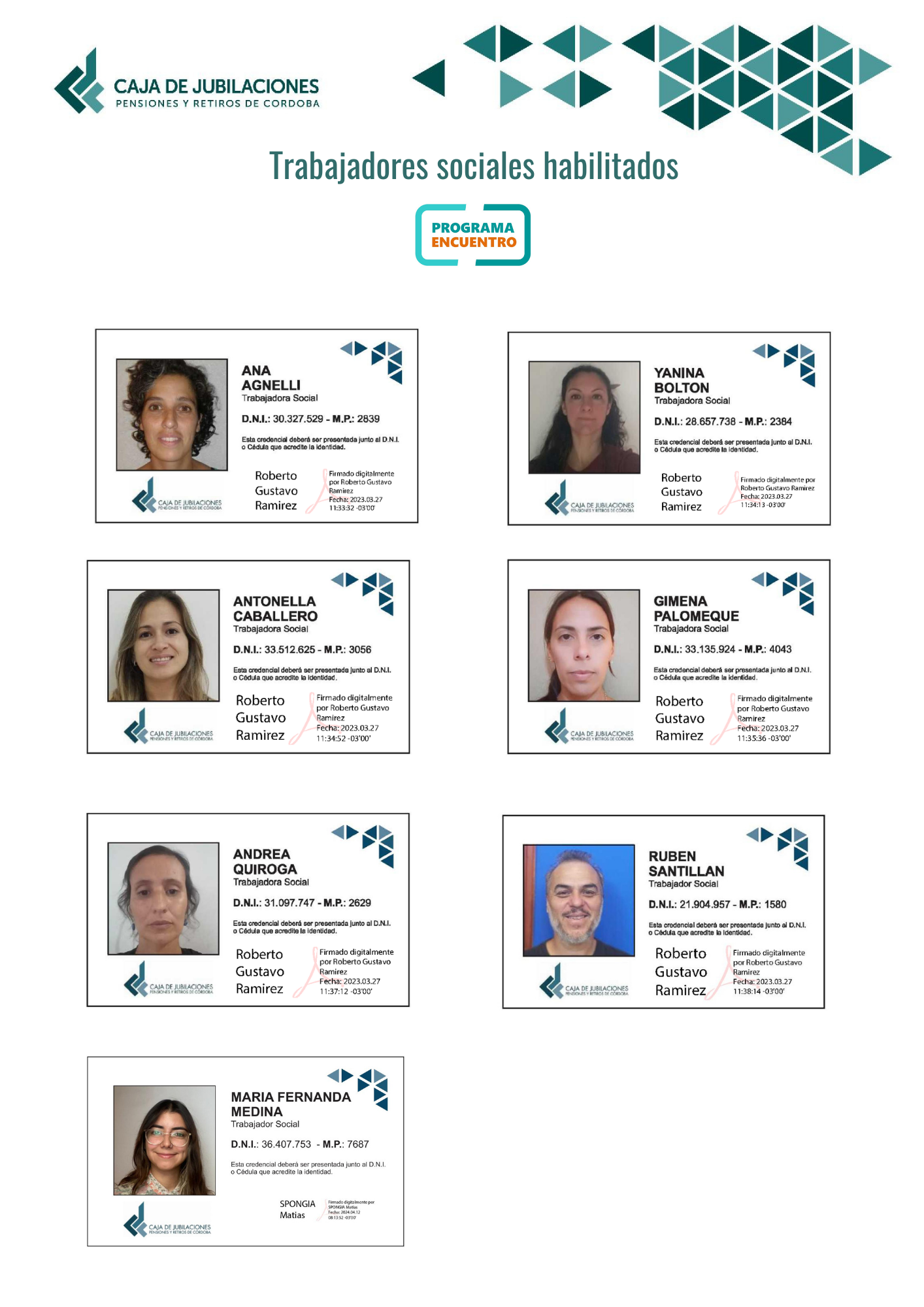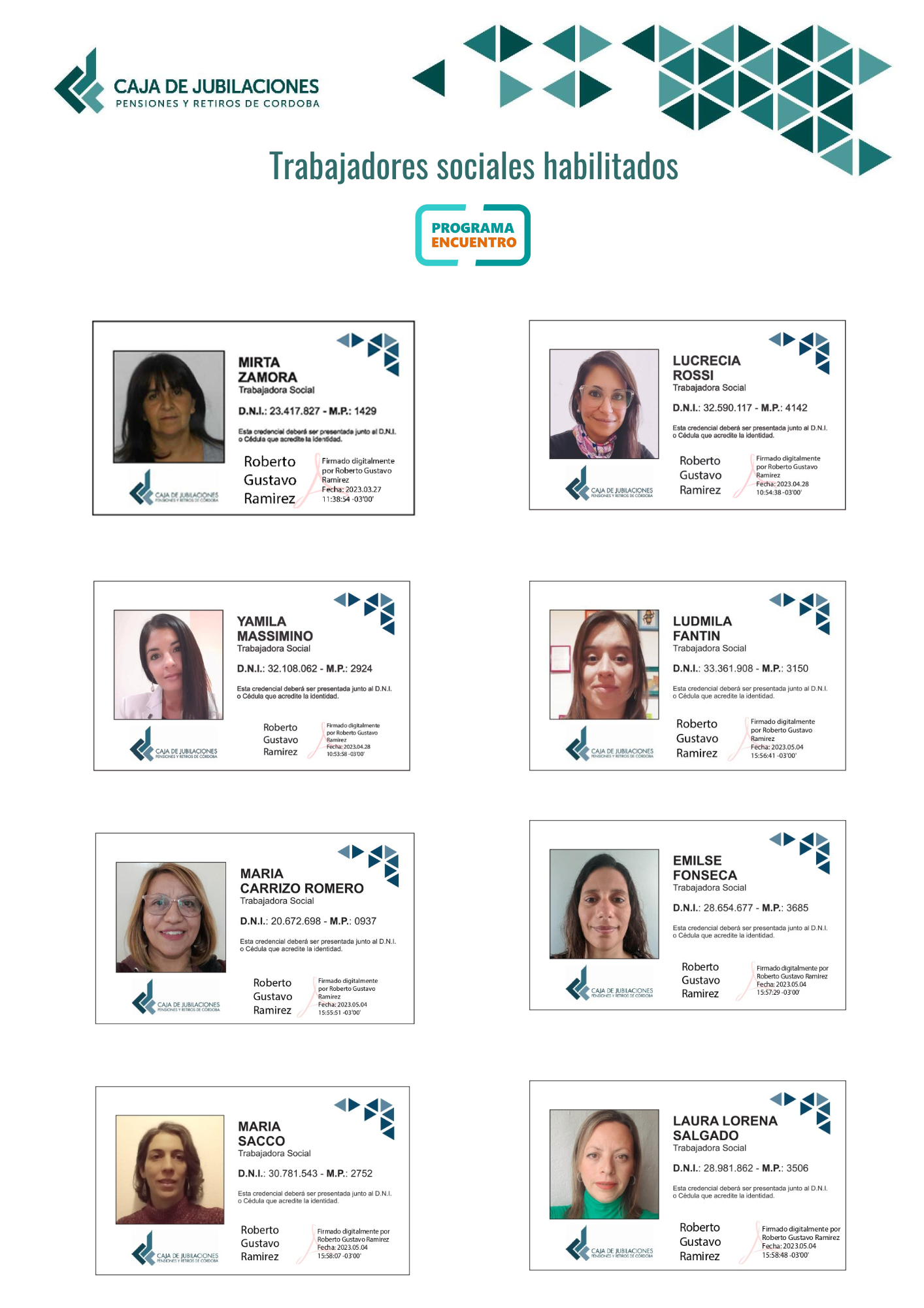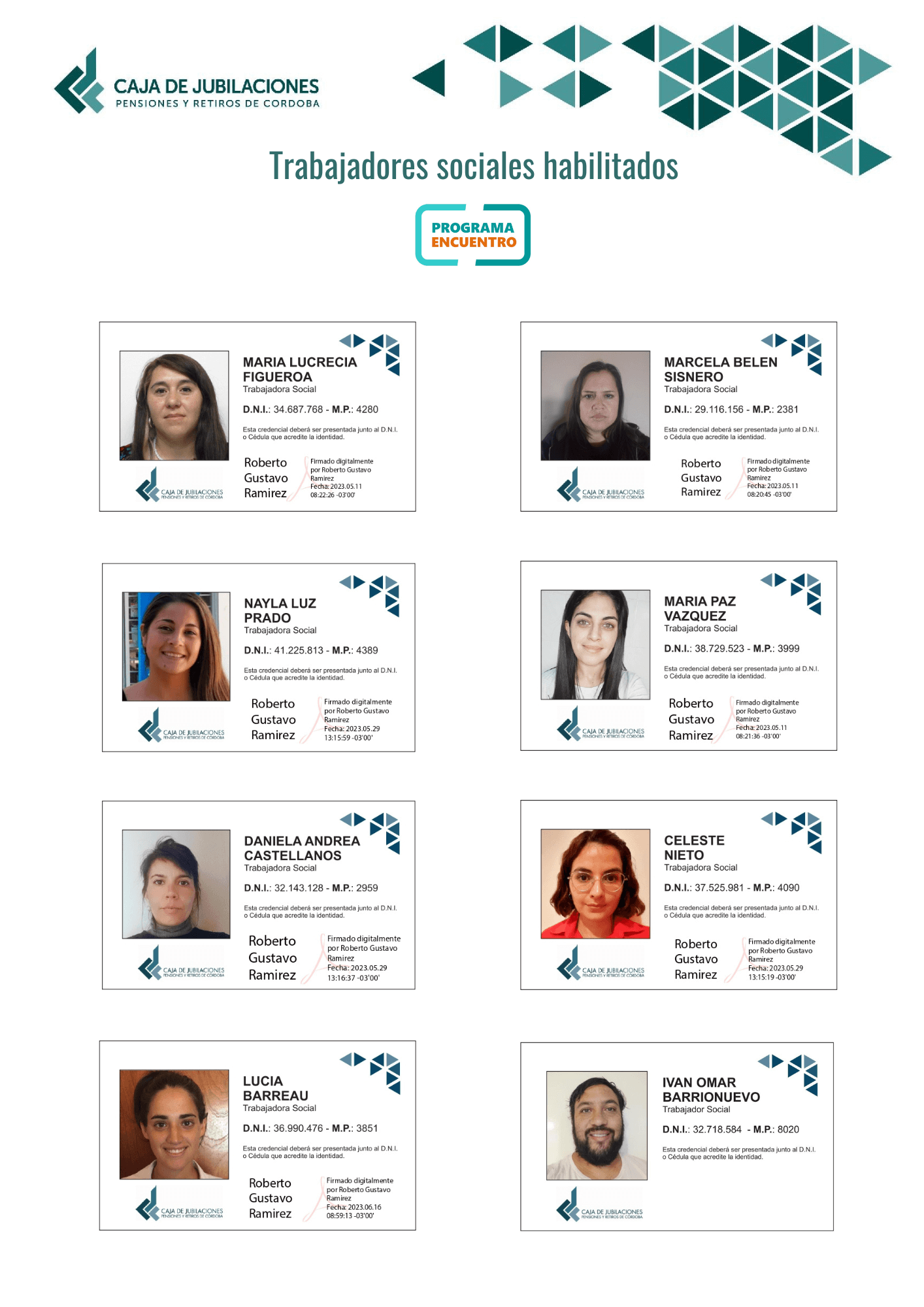 Por razones de seguridad, ponemos a disposición la nómina de trabajadores sociales que están habilitados para realizar las visitas. Cualquier consulta puede contactarse con la Caja a través de los siguientes canales de atención: