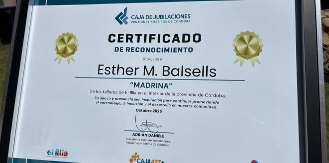 Durante la jornada, también se entregó un reconocimiento especial a Esther M. Balsells, de 90 años, vecina de Ballesteros, quien fue distinguida como “madrina de los talleres del Illia” del departamento Unión por su constante apoyo, entusiasmo e inspiración para continuar promoviendo el aprendizaje, la inclusión y el desarrollo comunitario.